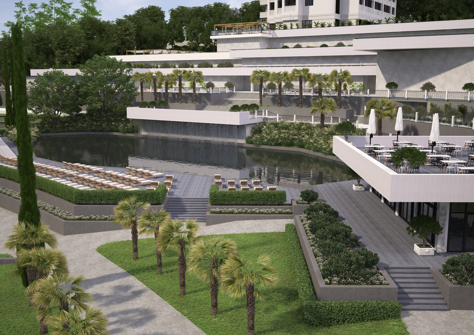 Лечебный SPA / Бьюти / Медицинский центр организован на ландшафтном уровне А3 вокруг крытого подогреваемого бассейна длиной 22 метра.